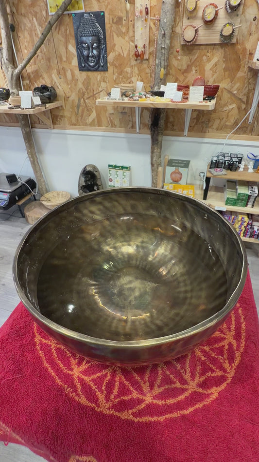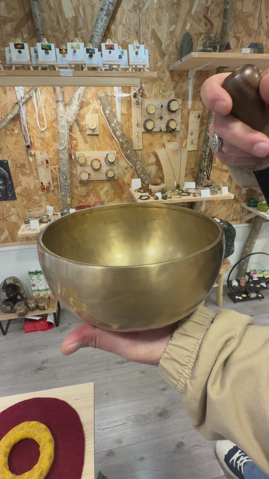 Bol tibétain artisanal en métal avec les 7 métaux, utilisé pour la méditation et la relaxation. Il émet des vibrations apaisantes qui favorisent le bien-être, la concentration et l’harmonisation des énergies.